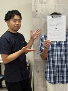 施術後 姿勢検査をしていただき、身体のゆがみや痛みが無いか確認されていました。