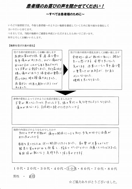 S.A様 50代 女性 頭痛・すべり症 クリック