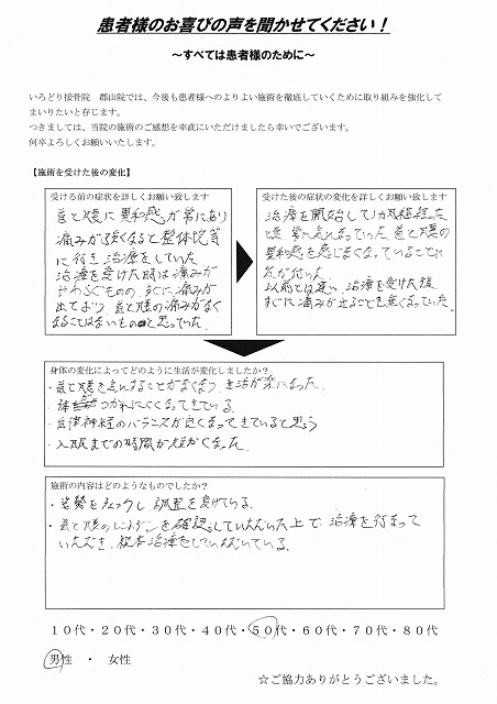 ・首と腰を気にすることがなくなり、生活が楽になった。